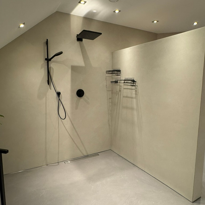 Fugenlose Böden und Bäder zeichnen sich durch nahtlose, glatte Oberflächen aus, die ohne sichtbare Fugen auskommen. Wir beschichten Ihre Duschen, Wände und Böden mit speziellen Materialien aus Microzement, Kalkmarmorputzen, Epoxidharz und PU-Verlaufsbeschichtung, die eine gleichmäßige Oberfläche schaffen. Durch die Art der Verarbeitung wirken Ihre Wände und Böden wie aus einem Guss, was eine ruhige und harmonische Atmosphäre schafft. Diese Art der Gestaltung sorgt für ein minimalistisches und elegantes Aussehen. Außerdem erleichtert dies die Reinigung erheblich, da sich keine Schmutz- und Wasseransammlungen in Fugen bilden können. Wir haben eine nahezu grenzenlose Farbtonauswahl und können Ihr Bad und Ihre Wohnräume zur Wohlfühloase machen.